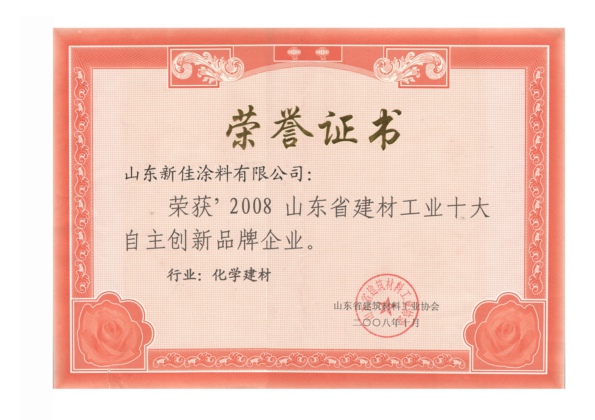 - 2008年山东省建材工业十大自主创新品牌企业