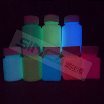 夜光漆是墙艺漆的一种,缤纷多彩的发光效果任您选择,目前最流行的黄色、粉红、蓝色、黄绿、橙色、绿色、蓝绿色等多种颜色。夜光漆经过吸收一般可见光照射10到20分钟后,可在黑暗持续发光12个小时左右,可将有限的单调平面扩展为奇特发光的梦幻般多维空间。装饰效果流光溢彩,错落有致,图案逼真、层次分明、细腻、无接缝、不起皮、不开裂,底色和面色可以自由搭配,人物、山水、花朵、卡通等图案可任意选择,还可以个性定制,并可无限次循环使用,使用寿命长久, 无毒无害、不含放射性元素,是新一代环保型装饰涂料。主要适用于娱乐场合及高档家庭住宅。
