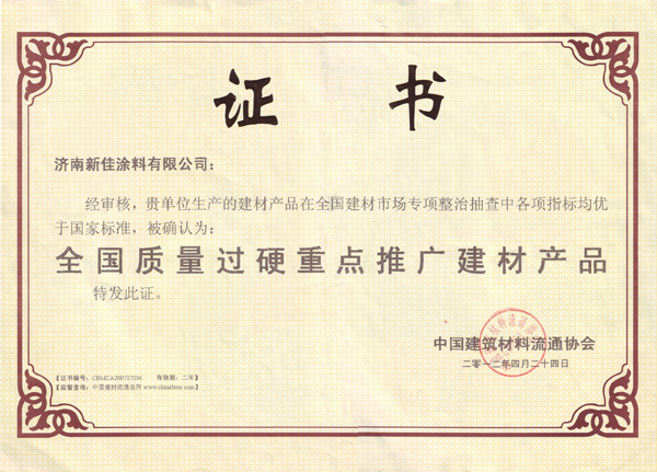 - 山东省建设工业品备案证 内墙系列