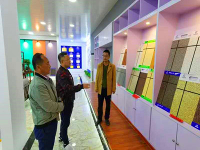 山东新佳涂料有限公司热烈欢迎客户来公司考察,客户通过对我们原材料,样板,成品参观,真正的了解了新佳漆产品的生产流程,以及产品生产过程中,我们是如何把好质量关的,增加了客户对我们产品的认可。山东新佳涂料有限公司是一家集研发、生产、销售为一体的大型涂料生产企业,产品涵盖真石漆,乳胶漆,水包水,水包砂、高档装修漆以及配套的产品抹面砂浆,腻子,底漆,罩光漆等等产品,如果有需要的朋友可以随时联系我们,联系电话:18663737842,0531-88959953.