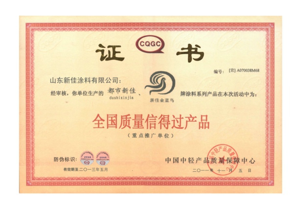 - 山东省建设工业品备案证 内墙系列