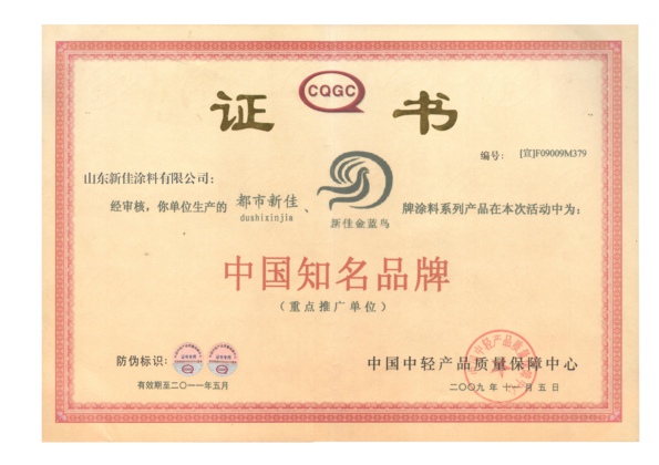 当前位置:首页 » 资质认证 » 新佳涂料荣获中国知名品牌称号